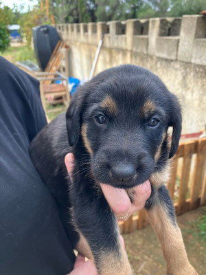 die Kleine wurde zusammen mit ihrer Mutter und Geschwistern gefunden. Sie ist schwarz-braun und hat längere Haare als die anderen. Ein englisches Ehepaar auf Kefalonia hat die Familie im Regen gefunden und bei sich aufgenommen. Nun werden dringend Familien für die Welpen und die Mutter gesucht. Im Januar könnten die Welpen nach Deutschland reisen.